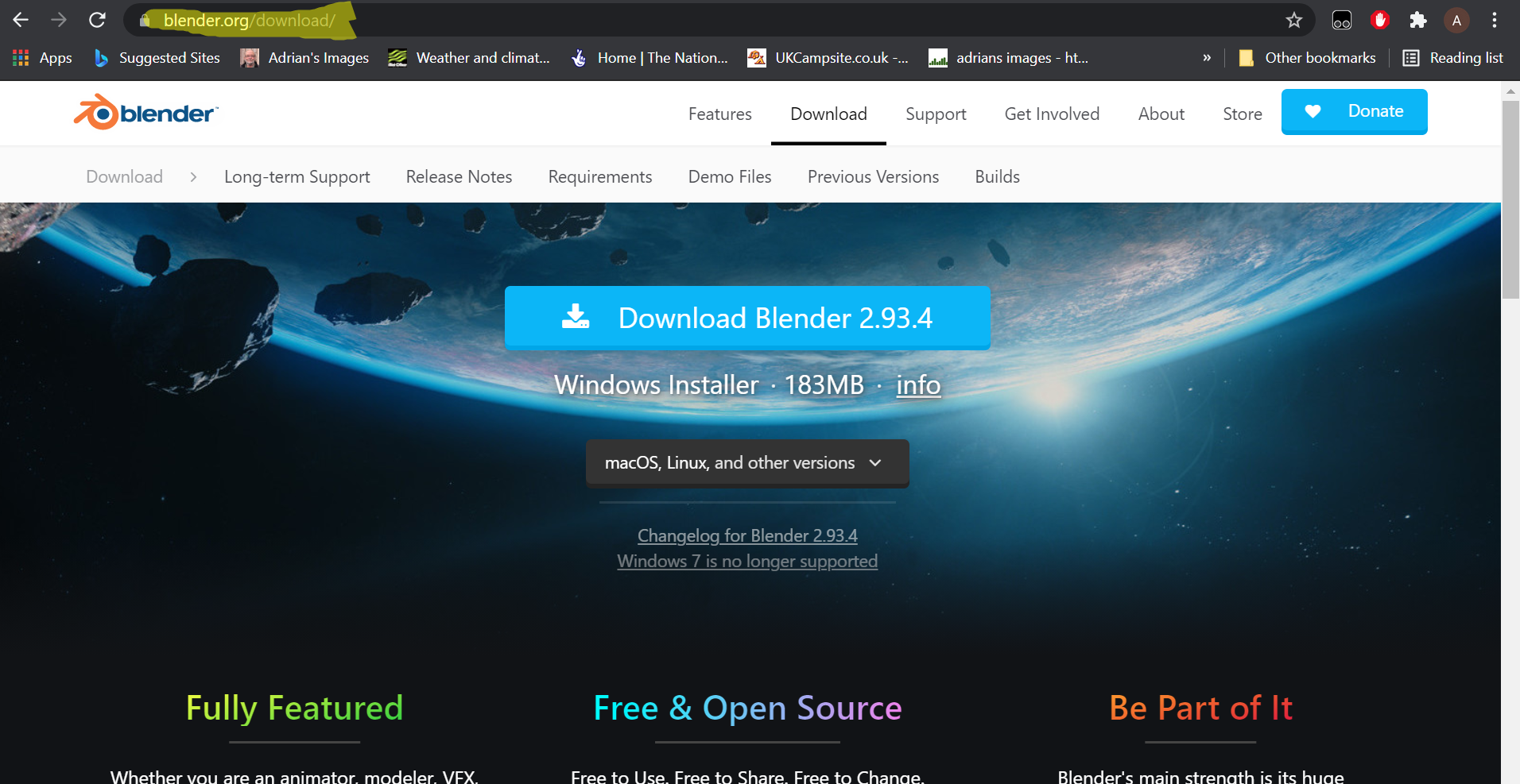 Go to Blender.org/download and you will find this screen, scroll down until you get here.